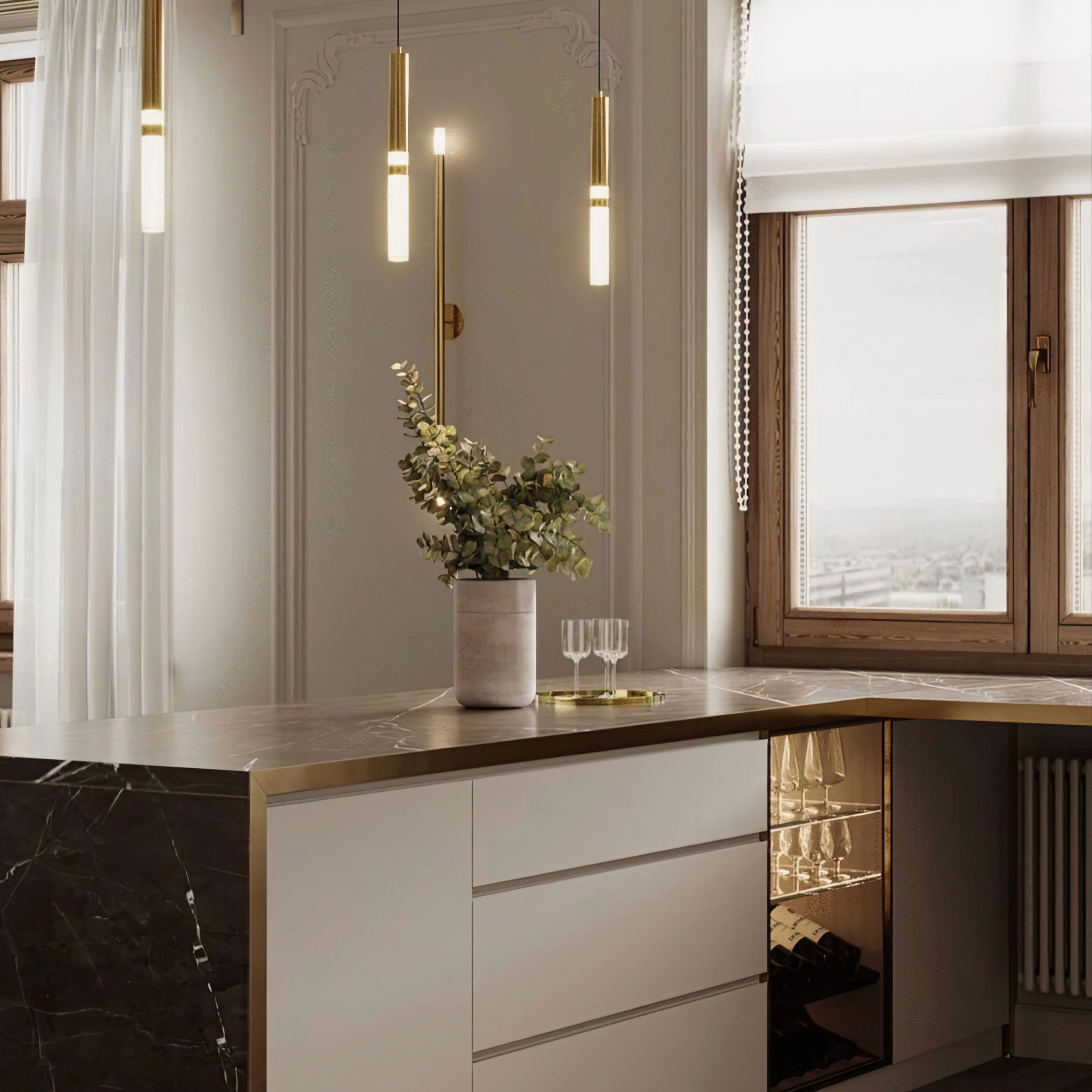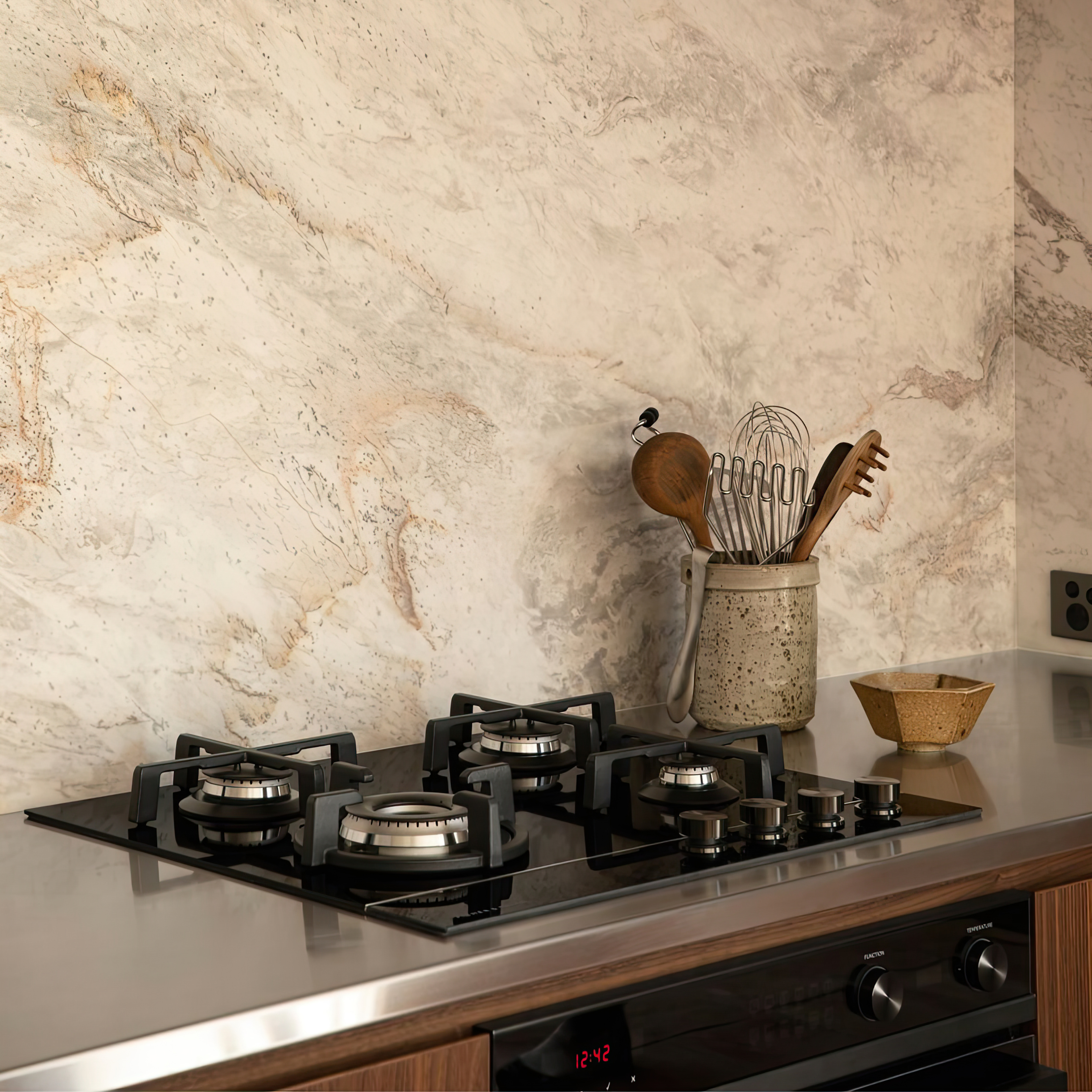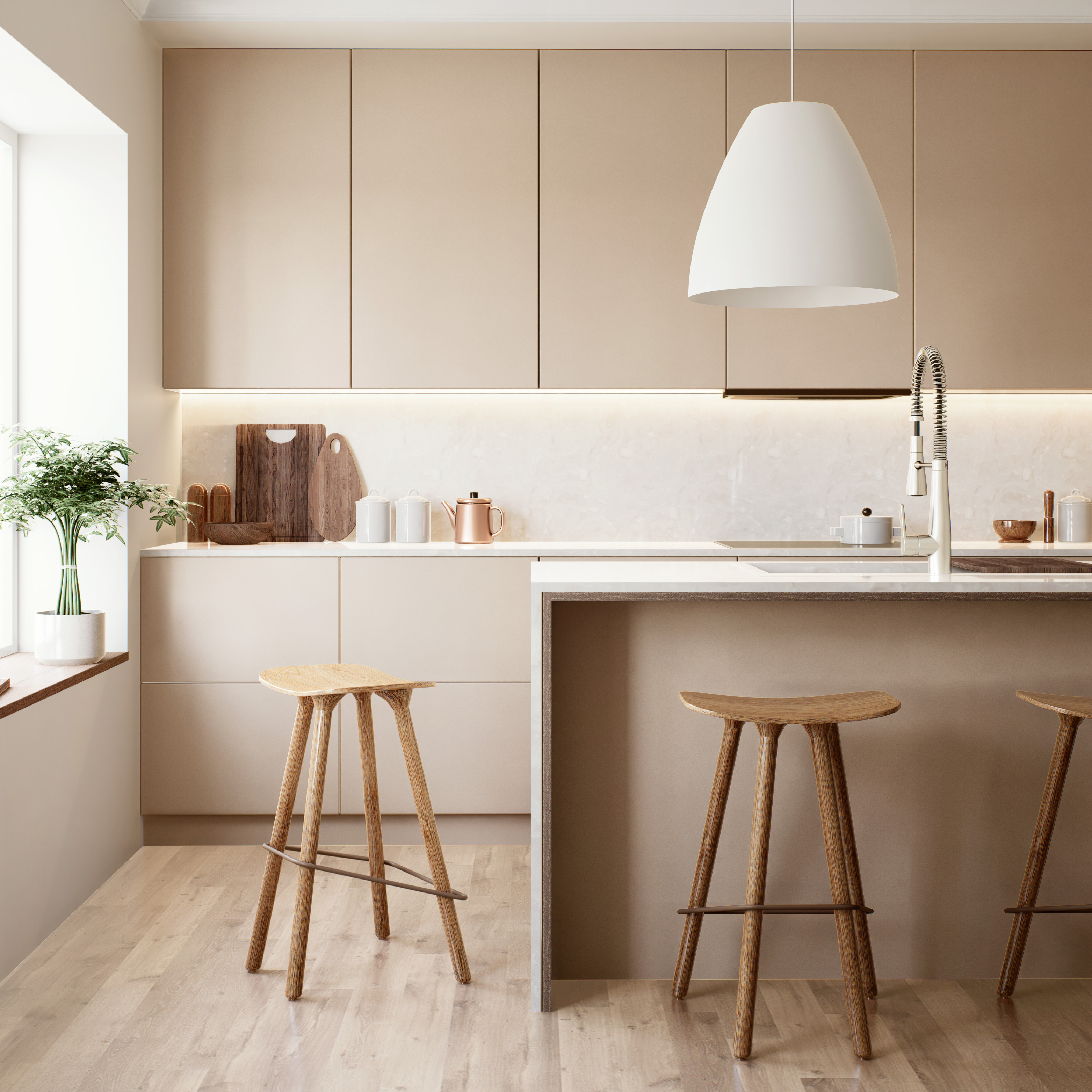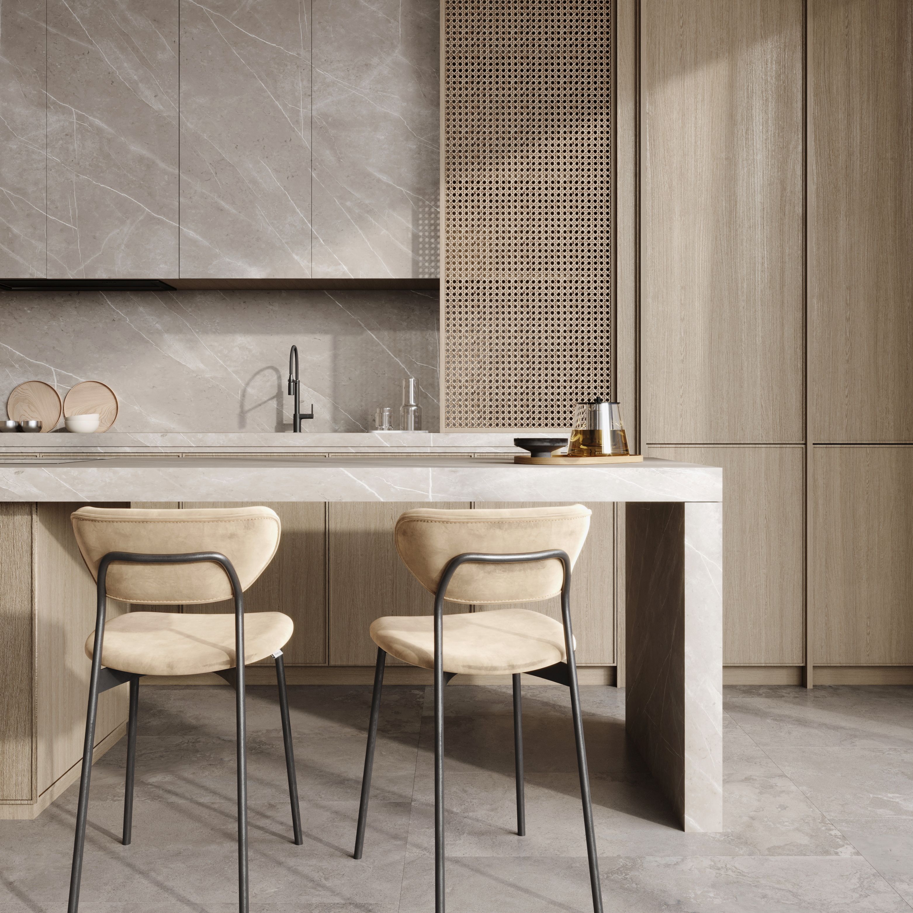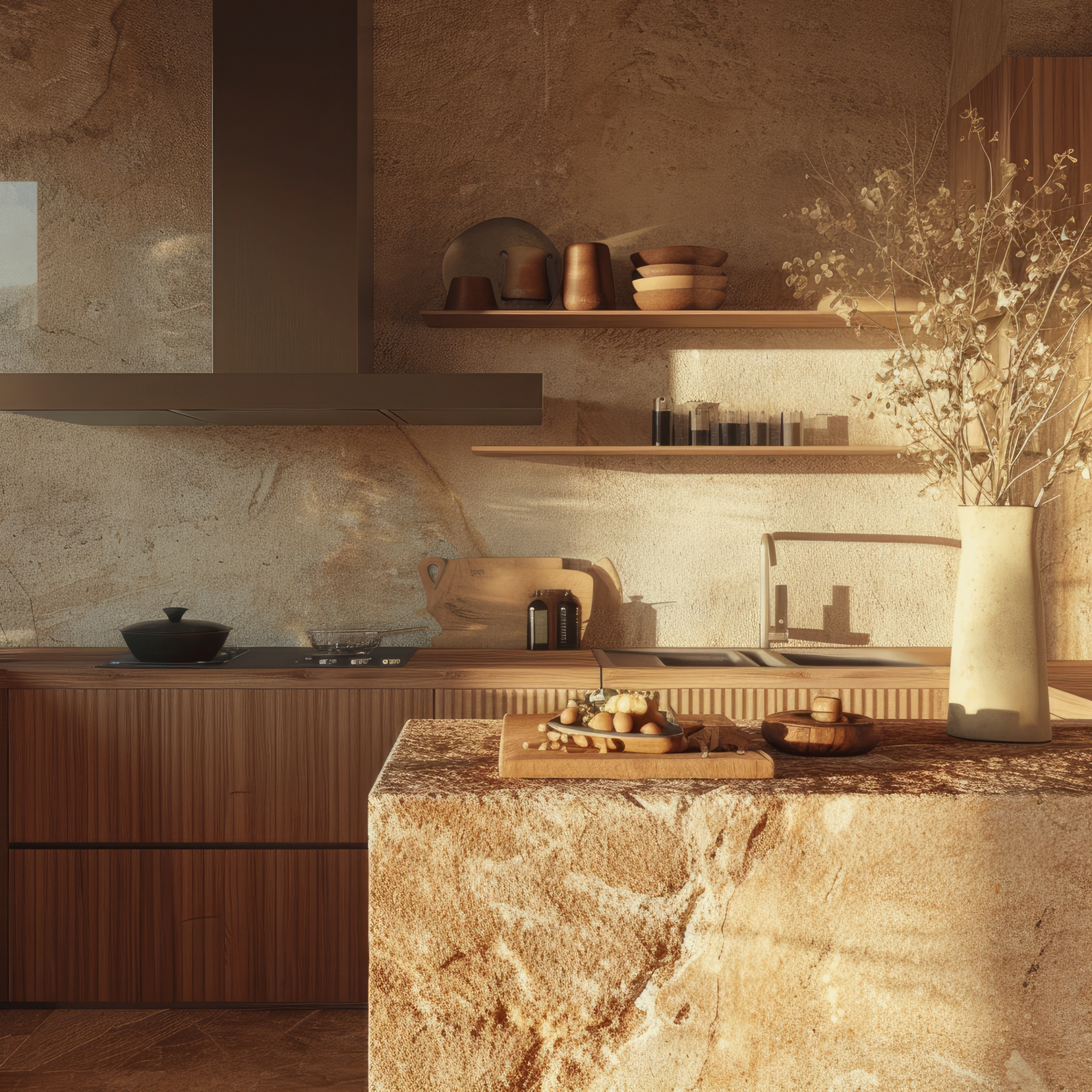 Sélection des matériaux : bois, laqué, quartz, inox, céramique, granit...